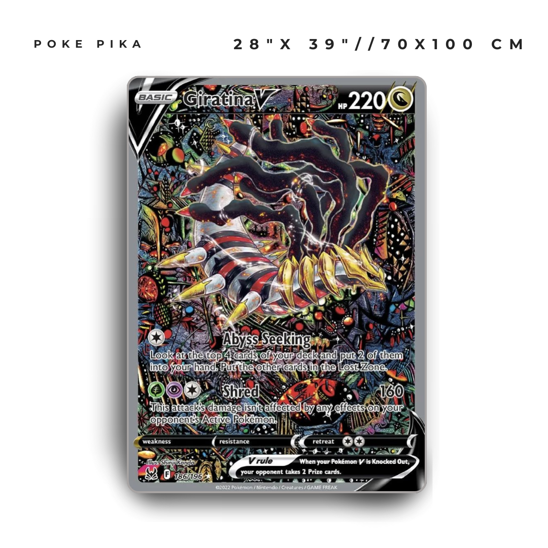 Yes it’s the same shape and proportions as a real Pokémon card, just magnified so you can enjoy every detail. The standard size is 27.5 x 39.3 inches (70 x 100 cm) a perfect large-scale version to hang, place in your setup, or decorate your room.